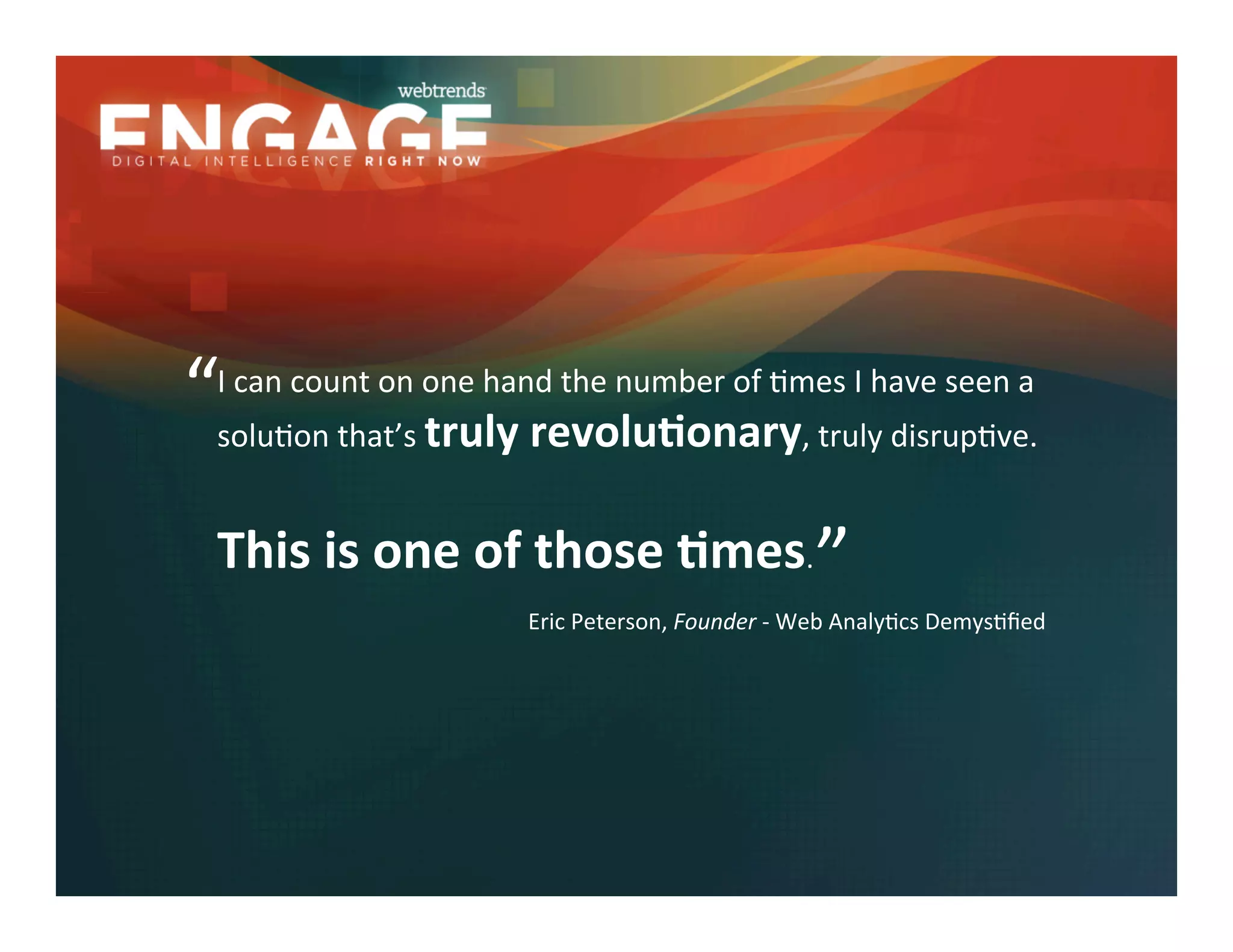 This document discusses a new real-time analytics solution called Webtrends Streams. It provides three key benefits: (1) It offers visitor-level details and insights about customer behaviors as they happen on a website. (2) It delivers this intelligence in real-time through a push API to fuel action systems and improve customer engagement. (3) It shifts analytics from rear-view reporting to powering in-the-moment actions and optimizations. The document outlines how Webtrends Streams works and its potential to transform digital marketing, optimization, and business processes by supplying rich customer insights in real-time.