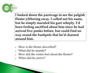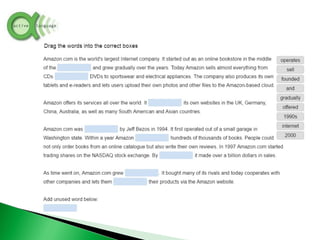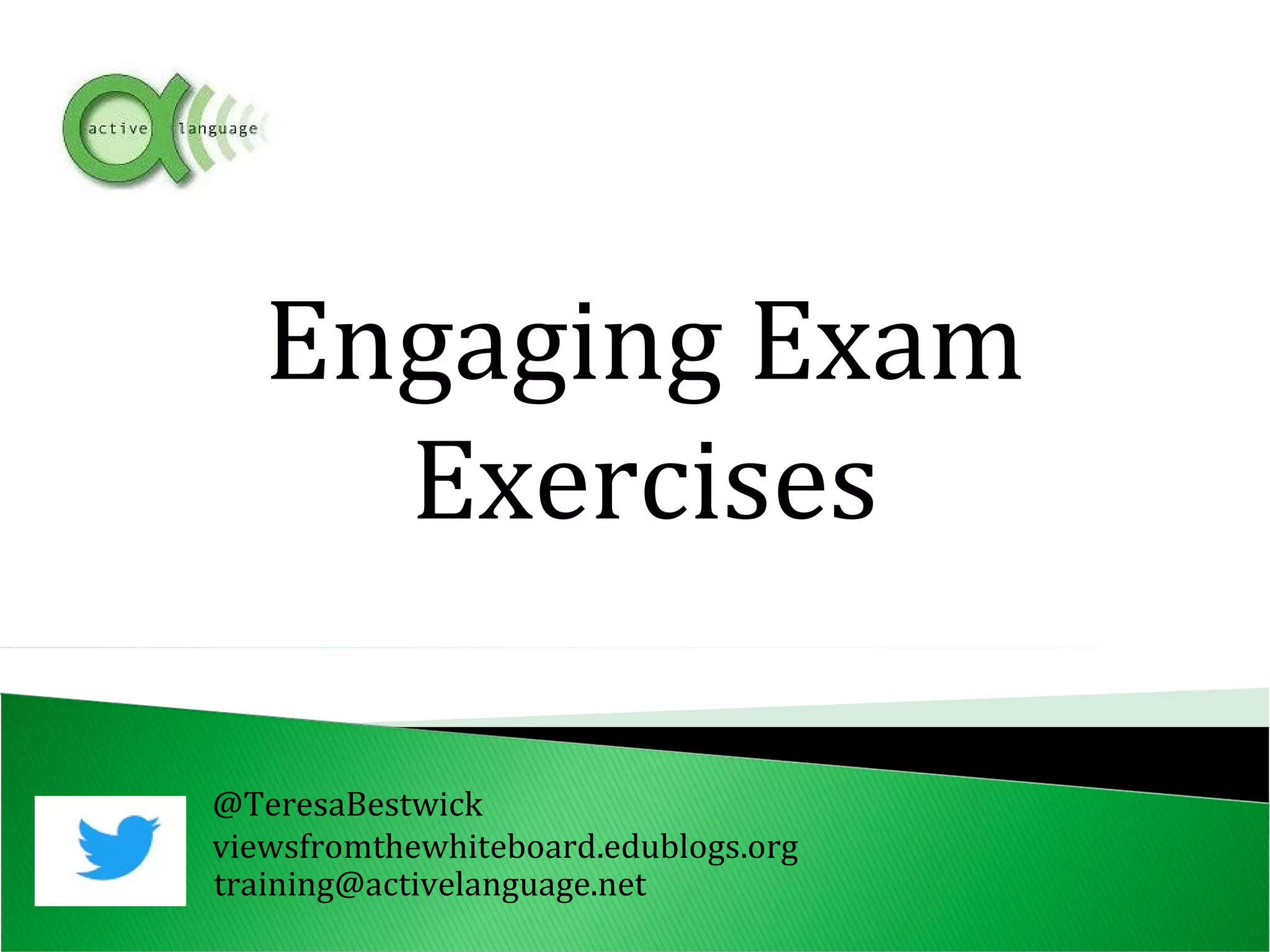 The document provides sample activities and exercises for language exams, including describing pictures, cloze tests, matching activities, and role plays. It includes sample answers for picture descriptions and recommends tools like SPRE (Storyboard Prompts for Reflective Engagement) for generating story prompts. The document also thanks Active Language for organizing the event and test takers for providing feedback on activity ideas.