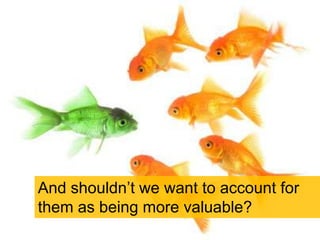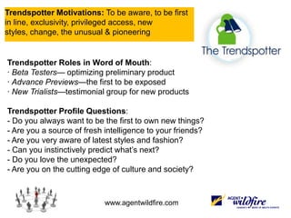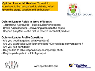 The document discusses the significance of influencers in social media and marketing, emphasizing that a small, passionate group can have a disproportionate impact on brand perceptions and consumer behavior. It highlights various types of influencers and their motivations, as well as the importance of engaging authentically with these individuals to maximize brand growth and value. Statistical trends in media and marketing further illustrate the shift towards word-of-mouth and influencer marketing as key growth areas.