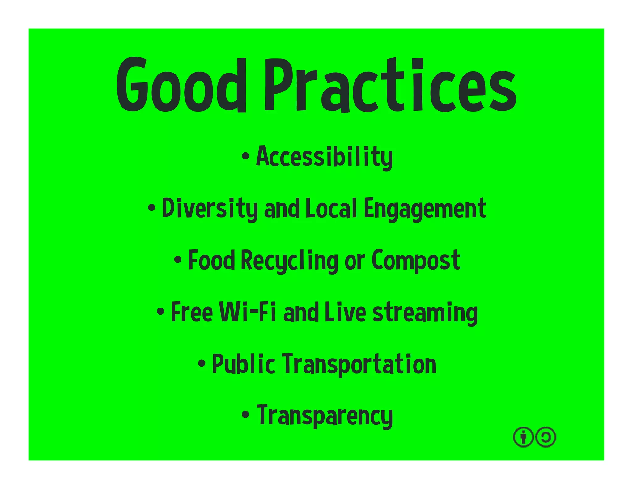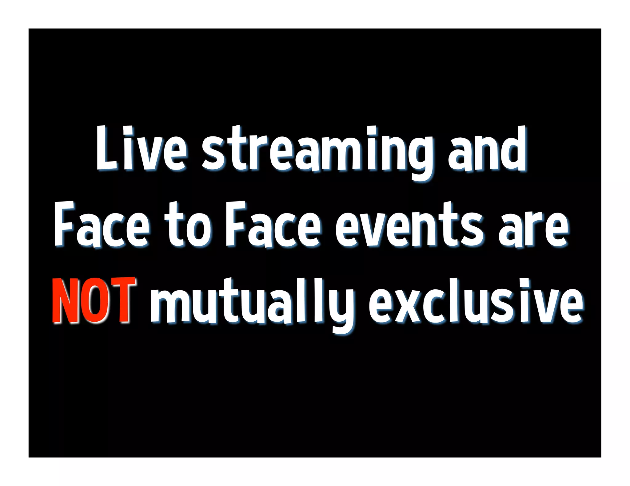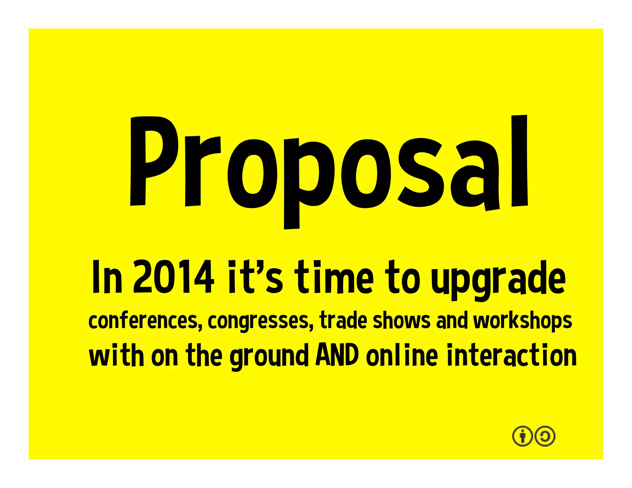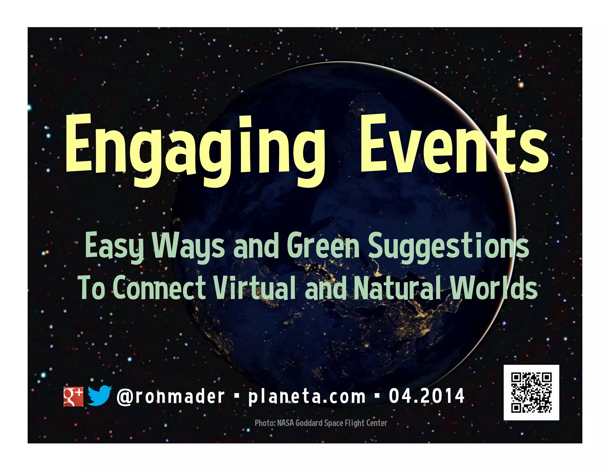 This document provides suggestions for making events more engaging and sustainable by connecting physical and online participation. It highlights options for livestreaming events online and engaging remote participants. Checklists are presented for event organizers to evaluate social media integration, local engagement, legacy planning, and standards for international, local and online events. Recommendations include providing free Wi-Fi, livestreaming, and ways to benefit both in-person and remote participants.