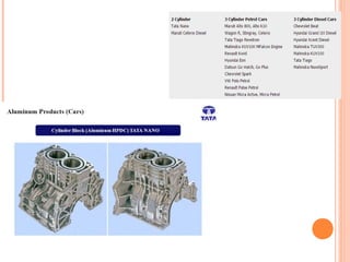 The document discusses the key parts and classifications of internal combustion engines. It describes the major components of an engine like the cylinder block, cylinder head, pistons, crankshaft and camshaft. It then covers the different types of cylinder arrangements found in engines like inline, V-shaped, opposed, radial and rotary configurations. The document also discusses the different classifications of engines based on aspects like the number of strokes, type of fuel and ignition method, firing order, cooling type and valve train layout.