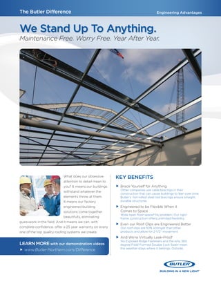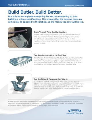 Butler's construction solutions offer robust, maintenance-free buildings designed with precision engineering, ensuring straight structures and leak-proof roofing systems. The company provides a hybrid construction approach that combines pre-engineered and conventional methods, allowing for flexibility and cost-effectiveness throughout the building process. With over 100 years of experience, Butler delivers expert guidance and single-source responsibility to enhance project efficiency and meet unique client needs.