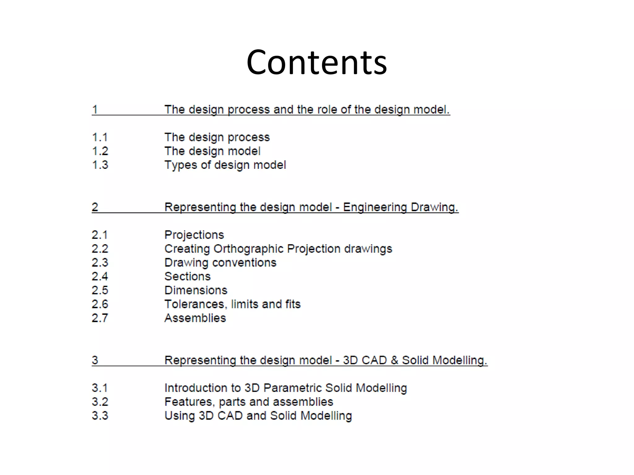 This document discusses engineering drawing and graphics. It covers topics such as the design process, projections, drawing conventions, dimensions, tolerances, assembly drawings, and 3D CAD solid modeling. The document provides information on orthographic projections, first and third angle projections, section views, dimensioning rules, fits and limits, and using CAD technology to represent, analyze, and visualize designs.