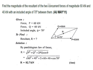 Resultant (R) = √(Fx)2 + (Fy)2