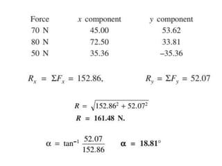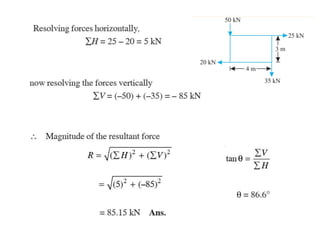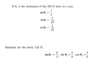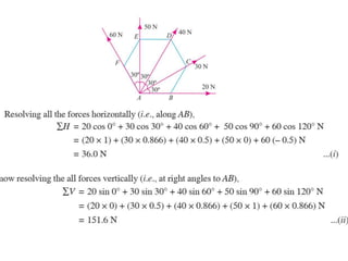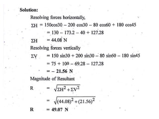 1. Resolve each force into horizontal and vertical components.