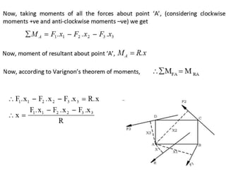 5. Use Varignon's theorem to locate the position of the resultant from point O.