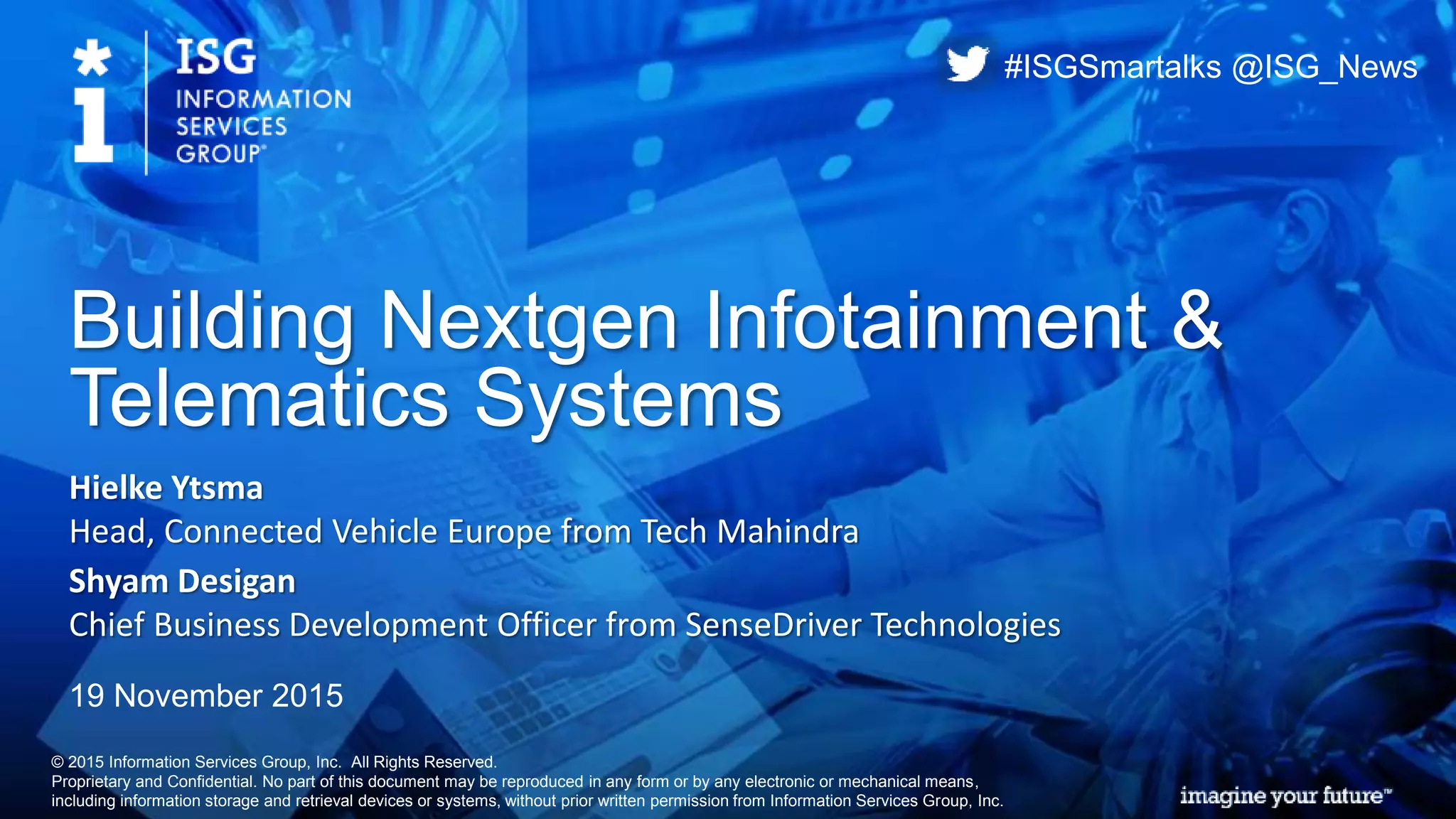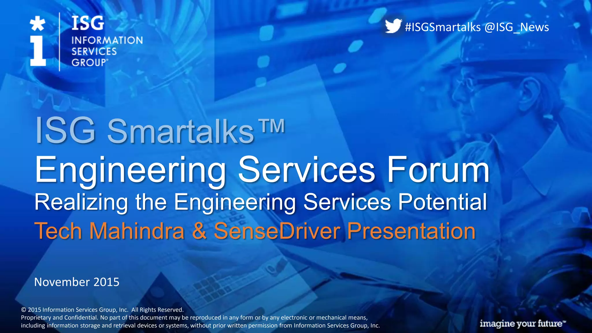 The document discusses the potential for engineering services in connected vehicles. It describes trends toward connectivity in various industries and how this is converging in automotive. New entrants from technology and telecom pose challenges for traditional automakers. Future vehicles will have more integrated systems for infotainment, navigation, autonomous features and data analytics. Tech Mahindra and SenseDriver present their work developing next-gen connected systems, including a heads-up display. Realizing the full potential will require new business models and cross-industry collaboration between automakers, suppliers and technology companies.