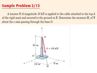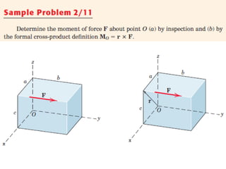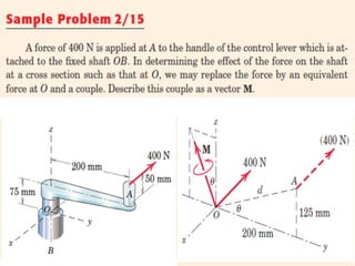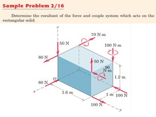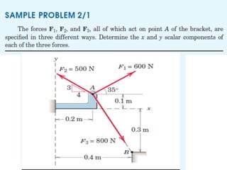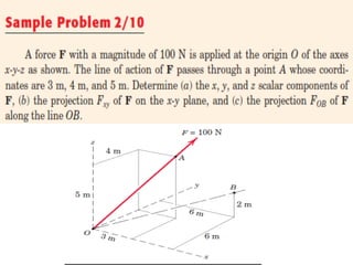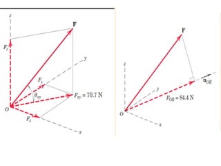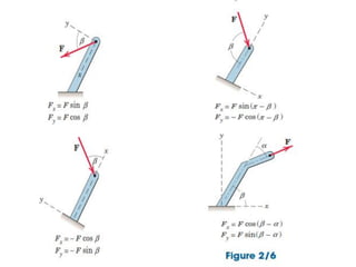 This document provides an overview of forces and force systems in engineering. It introduces the concept of a force vector and its components. Key points covered include: