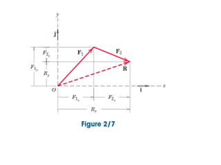 - Methods for adding concurrent forces include the parallelogram and triangle laws. Forces can be resolved into rectangular components.