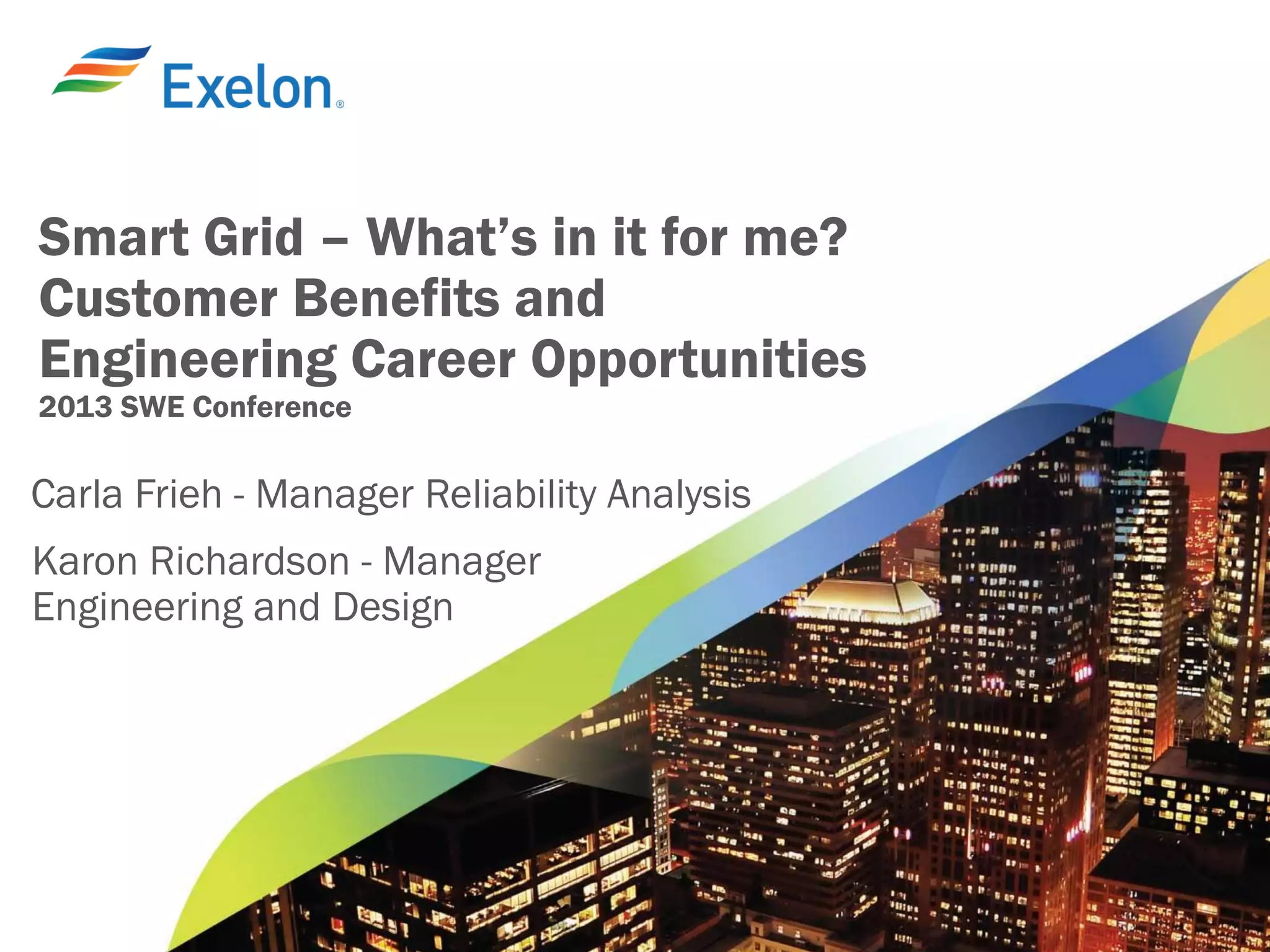 This document discusses the benefits of smart grids for customers and career opportunities in smart grid engineering. It provides an overview of ComEd, a utility that serves northern Illinois, and its investments to upgrade its electric grid. A smart grid uses technology to improve grid efficiency, reliability, and integrate renewable energy. It describes the key components of a smart grid including smart meters, distribution automation using devices like reclosers, substation upgrades, and communication networks. Automation allows self-healing of outages and benefits customers with fewer and shorter outages. Smart grids provide opportunities for customer savings through time-based pricing and energy management. Careers exist in utility grid design, communications networks, and consumer applications.