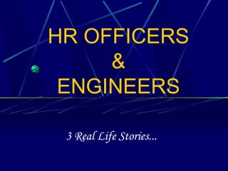 3) In the third story, three HR people pray to God to help them cross a raging river - the first grows strong but struggles, the second is given tools but also struggles, while the engineer simply looks at a map and crosses the nearby bridge.