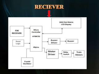 Train drivers often neglect railway signals, which can lead to accidents, especially in foggy conditions. To address this problem, an automatic speed control system for trains was developed using a microcontroller. The system uses an infrared transmitter at the signal that communicates a code received by a receiver on the train. This allows the train's speed to be automatically controlled based on the signals to improve safety. The system is small, easy to operate remotely, inexpensive to manufacture, and flexible enough to be used in various applications including automation and remote areas.