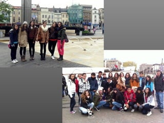 The document describes a student's experiences during a school exchange trip to England. It details the various activities and locations visited each day, including trips to Bristol, Cheltenham, London, Oxford, Gloucester, Bath, and time spent with their English partner and family. The exchange trip lasted several days with daily activities like visiting museums, aquariums, shopping, sightseeing historic sites, and participating in social outings like bowling before returning home tired after the long trip.
