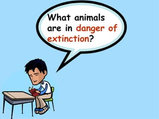 Pandas are in danger of extinction mainly due to habitat loss. Their main food source is bamboo, which takes a long time to grow. This was not an issue in the past when pandas lived throughout southeast Asia, including China, as they could simply move to new bamboo forests. However, as the forests have been cut down, pandas are finding it harder to find food after bamboo blooms die out. Siberian tigers also faced near extinction in the 1940s, with only 40 remaining in the wild due to hunting, though the population has since rebounded. Whales also face endangerment from over-hunting for their products, with some populations being reduced by over 99% in some areas due to commercial whaling