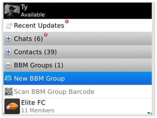This document contains information about BlackBerry Messenger (BBM) including the contact information for Saeed Abdulllah Al Katheeri and references for BlackBerry World and an article about football from Elaph. It requests contact if there are any questions.