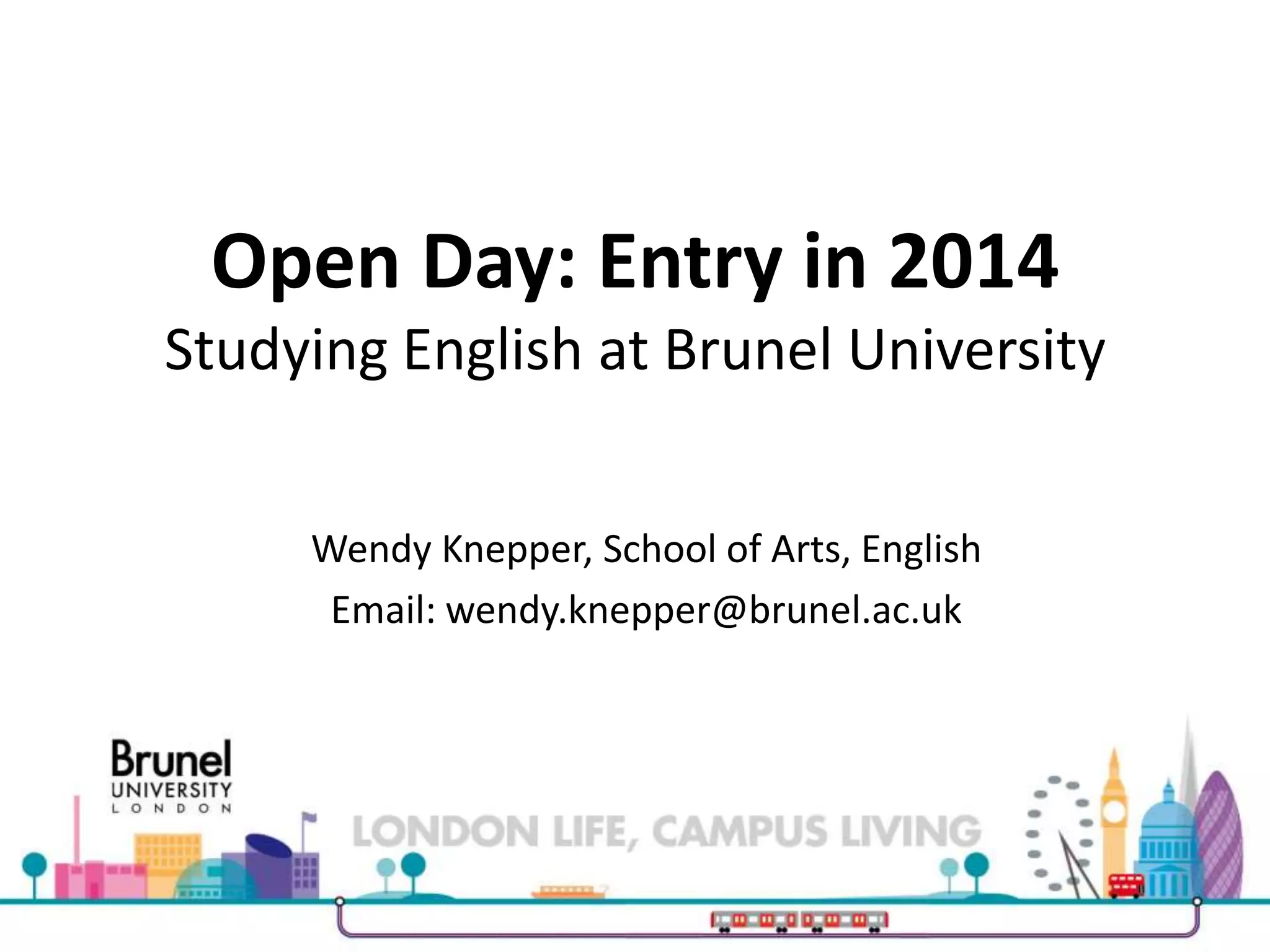 The document provides an overview of studying English at Brunel University. It discusses the philosophy, curriculum, modules, career opportunities, and student outcomes of the English program. Some key points: