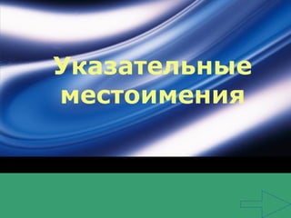 This document discusses demonstrative pronouns in Russian. It lists the pronouns "this, that, these, those" and provides examples of how to use each one to refer to singular and plural nouns. Examples are given for "this" referring to a fridge, clock, and apple and "that" referring to a TV-set and book. "These" is used in examples referring to cats and frogs, while "those" refers to clocks and bananas. Memory aids are also provided to help remember when to use each pronoun.