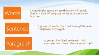 This document defines and provides examples of different types of sentences: