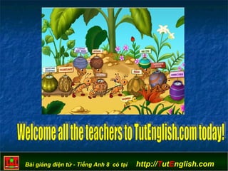 The document is an electronic lesson for English 8, covering vocabulary, prepositions, and furniture arrangement. It includes various exercises and examples related to everyday situations, such as identifying objects and making suggestions. Additionally, it provides tips for teachers and students to engage with the material effectively.