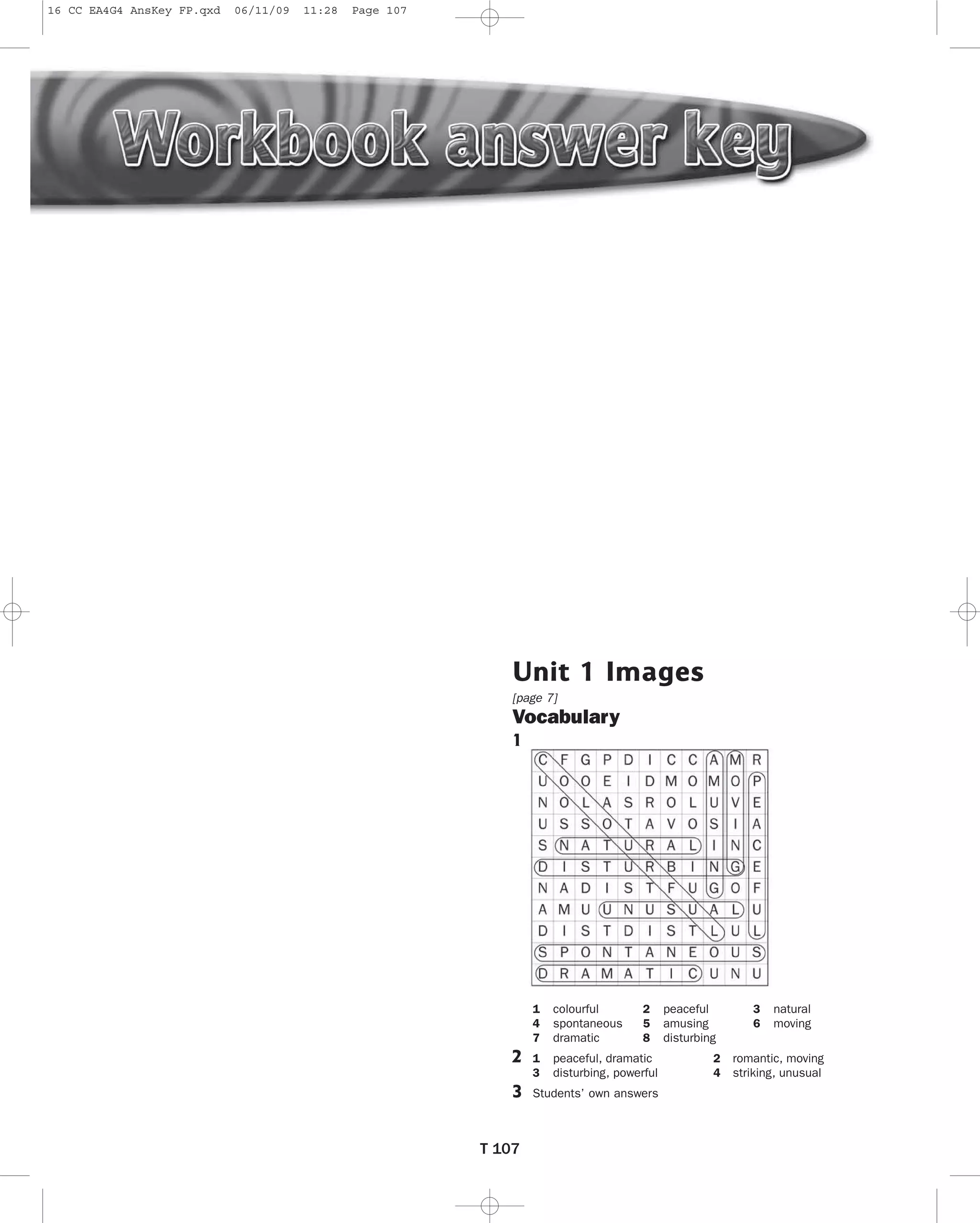 The document is a sample answer key and exam for a test on English grammar, vocabulary, reading and writing. It contains sample questions, sentences, paragraphs and student answers on various topics. The document provides the correct answers to test questions on topics such as prepositions, present tenses, adjectives, vocabulary related to feelings, opinions and photos.