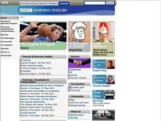 This document provides an overview of an English B1 module taking place from March to May 2012 with 10 lessons. It discusses strategies for progressing past the intermediate plateau, including separating language study and practice and focusing on different areas like grammar, vocabulary, pronunciation, speaking, listening, writing and reading. Resources recommended for language learning include Oxford dictionaries, BBC Learning English, UCL phonetic games, iTunes U, TED talks, and the CLACSON e-learning platform for this course.