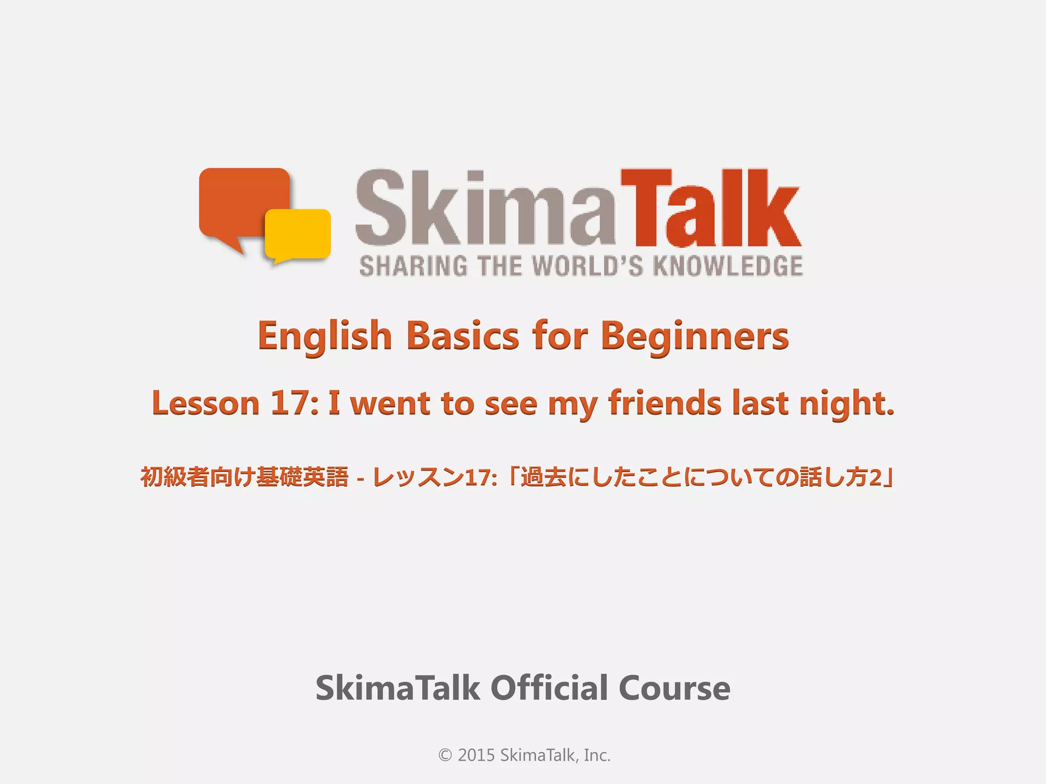 Inc. SkimaTalk Official Course English Basics for Beginners Lesson 17: I went to see my friends last night. 初級者向け基礎英語 - レッスン17:「過去にしたことについての話し⽅方2」