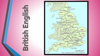 This document discusses various English dialects from around the world. It provides information on the distinguishing linguistic features of dialects such as Southern English, Cockney, Estuary English, East Anglian, West Country, West Midlands, Lancashire, Yorkshire, Northern English, Welsh English and Scottish English. Examples of phonological and grammatical differences are given for each dialect. The purpose is to outline the key characteristics that differentiate the major English-speaking regional dialects.
