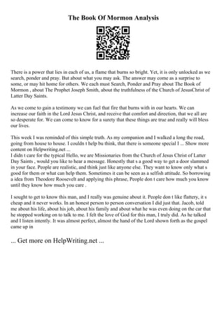 Mormon , about The Prophet Joseph Smith, about the truthfulness of the Church of JesusChrist of