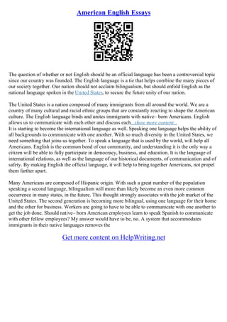 The document discusses the importance of English as a unifying language in the United States, emphasizing its role in communication, democracy, and education among diverse immigrant populations. It argues against bilingualism in favor of establishing English as the official language to promote national unity. Additionally, it highlights the significance of listening as a skill in communication, stressing the need for patience and objectivity to improve interpersonal relations.