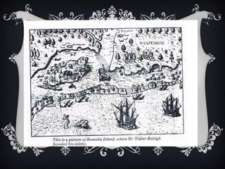 - Sir Walter Raleigh unsuccessfully established the Roanoke colony in present-day North Carolina and organized further colonial ventures.