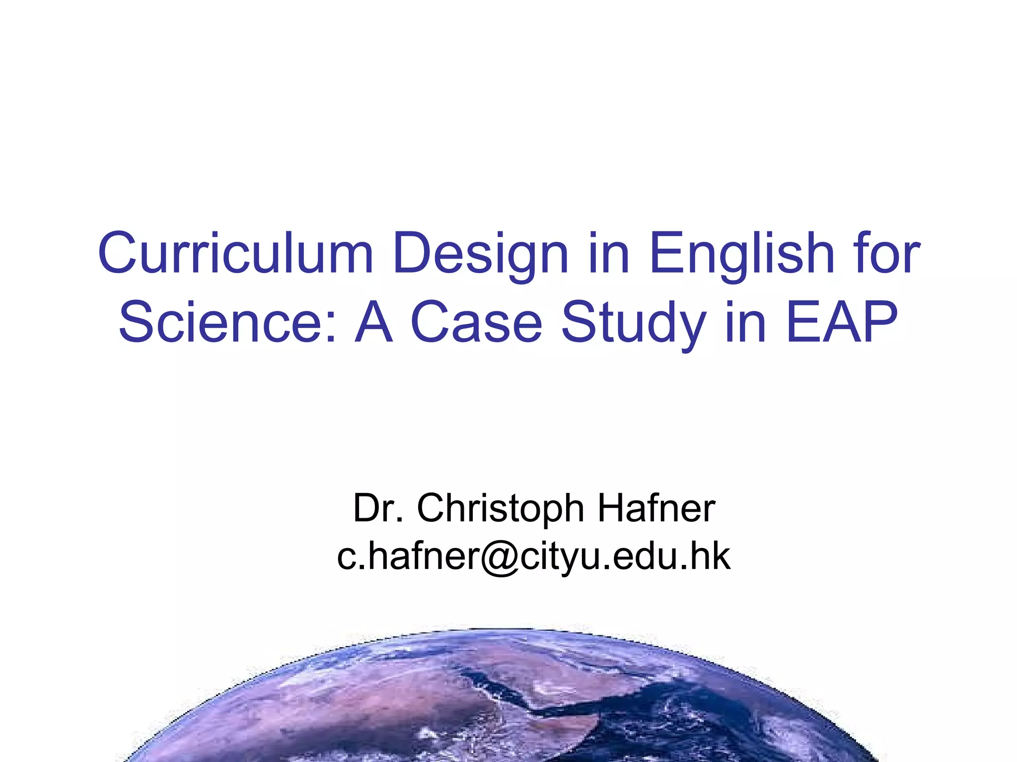 The document outlines a curriculum design case study for an English for Science course aimed at improving academic literacy among students in biology and chemistry departments. It emphasizes the importance of addressing language awareness in scientific communication and includes a detailed analysis of needs, curriculum principles, and innovative projects such as creating multimedia documentaries. The course aims to develop students' reading, writing, and presentation skills through task-based and genre-based approaches, incorporating real-world applications and collaborative learning.