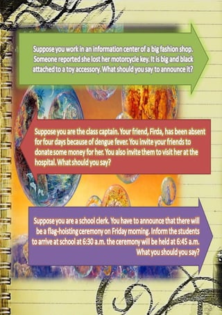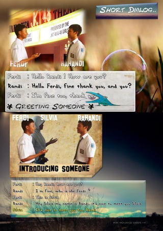 The document describes a project by students at SMA Negeri 1 Genteng Banyuwangi where they create a magazine-style English learning material, called a 'mag-book', to enhance their learning experience. It covers various English topics such as greetings, introductions, compliments, and grammar, providing examples and exercises for practice. The overall aim is to engage students in a more visually appealing and interactive way to learn English.