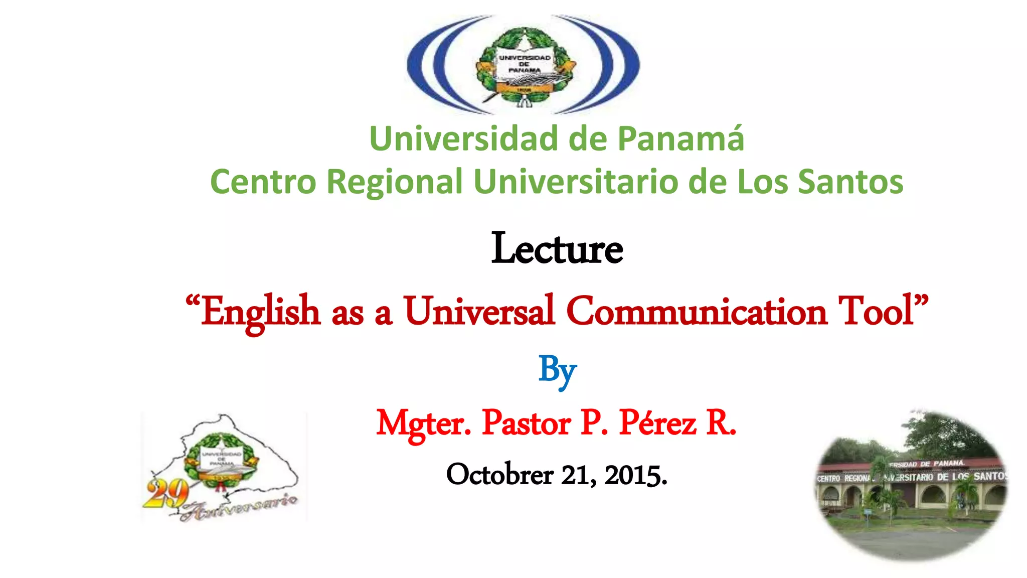 The document summarizes the history and importance of the English language as a universal communication tool. It discusses how English has adopted words from other languages like Anglo-Saxon, Latin, Old Norse, French, and Greek. It notes that English in its current form emerged in the late 16th and early 17th century during Shakespeare's time. Additionally, it outlines how English became mandatory in Panamanian schools in 2003 and is the official business language. Finally, it emphasizes that English is the most common foreign language for international communication between people from different countries, so it is important to learn.