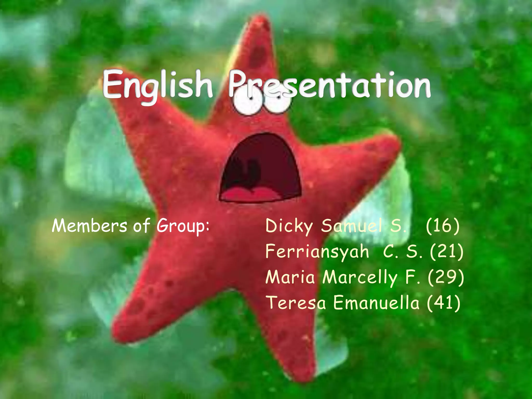 This document discusses yes or no questions and WH questions in English. It lists the members of a group and provides examples of question structures and functions of different WH questions. WH questions can ask about time, place, choice, subjects, objects, ownership, reason, suggestion, manner, condition, extent, distance, length, quantity, age, and reason.