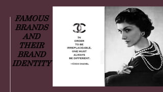 The Chanel logo was introduced in 1925 on Chanel No. 5 perfume. It consists of two interlocking 'C's representing the initial of founder Coco Chanel. There are various stories about the origins of the logo, but it is believed Chanel herself designed it to represent her name. Chanel is a French luxury fashion and perfume house founded in 1909 by Coco Chanel. It is known for women's suits, jewelry, handbags, and fragrances like No. 5 perfume. The company operates worldwide with over 300 locations and annual revenue of $5.2 billion.
