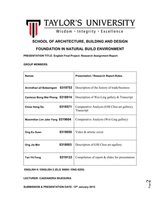 The report compares the different business models, locations, products, and histories of the two galleries to analyze strategies in Malaysia's art industry.