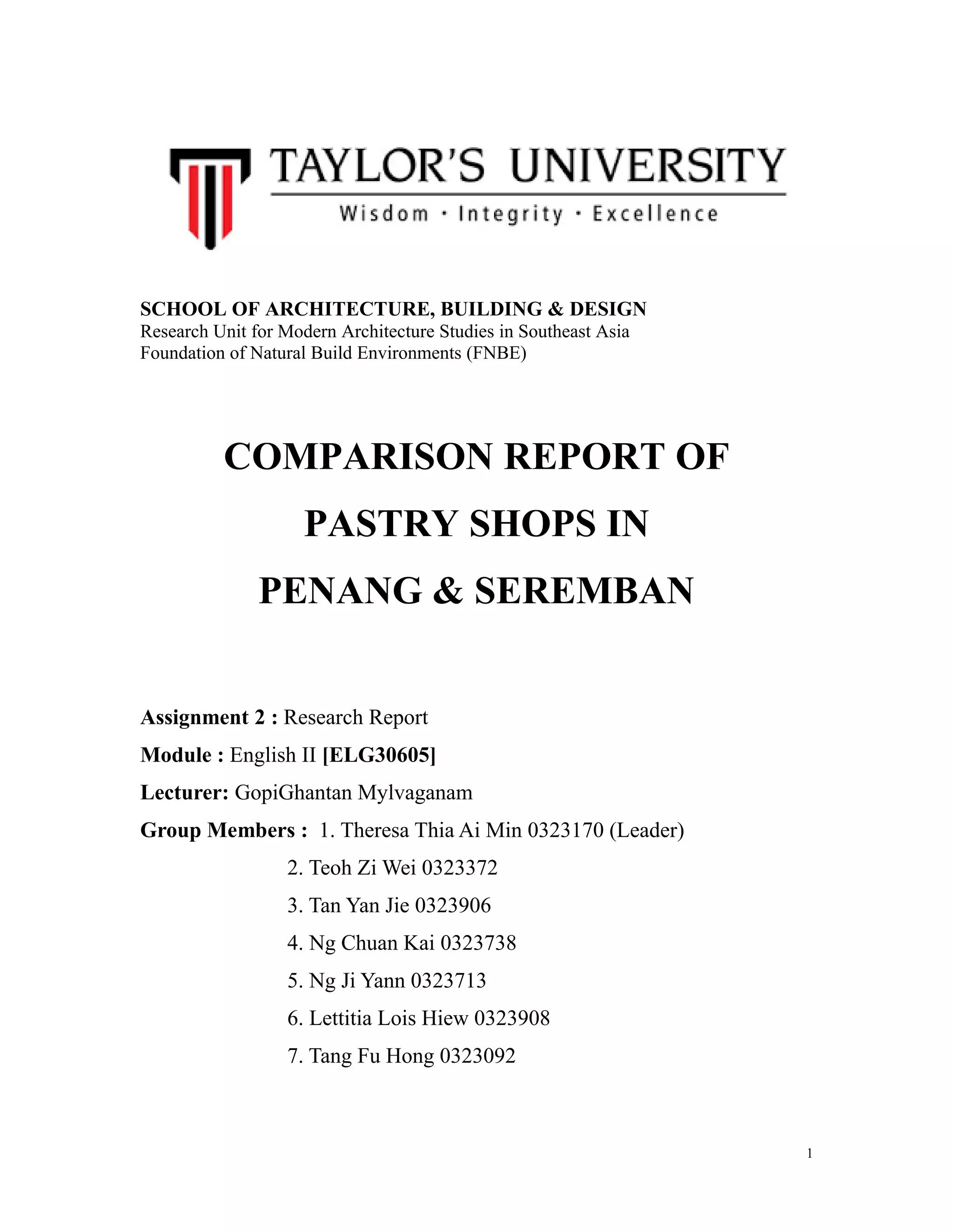 This report compares two traditional pastry shops located in Penang and Seremban, Malaysia. Asian Siew Pau in Seremban is famous for its siew bao and was founded in 1998, while Ming Xiang Tai in Penang has 4 branches and was founded in 2008 to honor the founder's grandparents who previously sold pastries. Both shops face competition from other local pastry shops. Asian Siew Pau focuses on customer service and welfare to maintain customers, while Ming Xiang Tai attracts many customers through its traditional recipes and strategic locations. Starting a new pastry business is difficult due to obtaining loans and breaking into an established market.