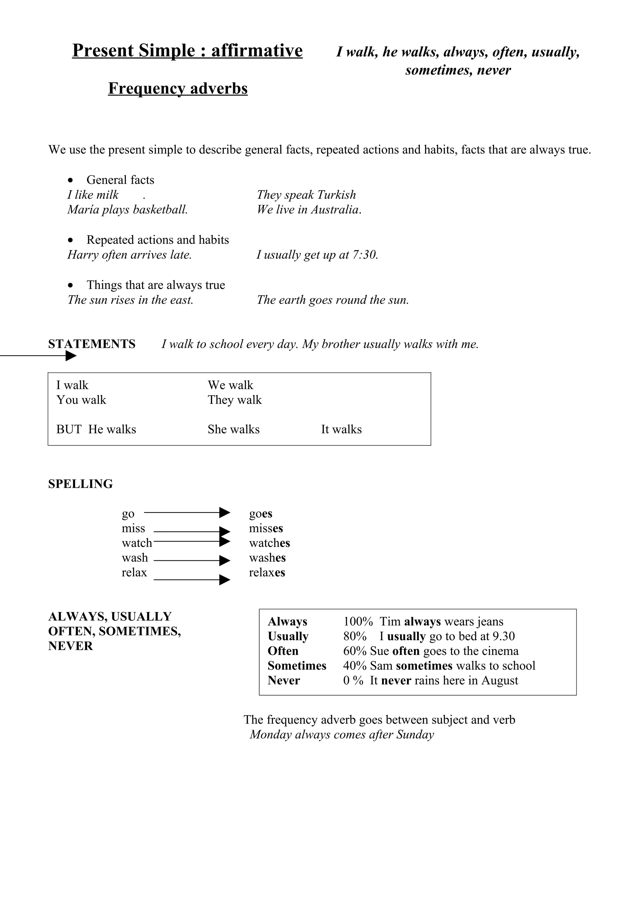 4. Spelling rules for regular and irregular verbs in the present simple.
