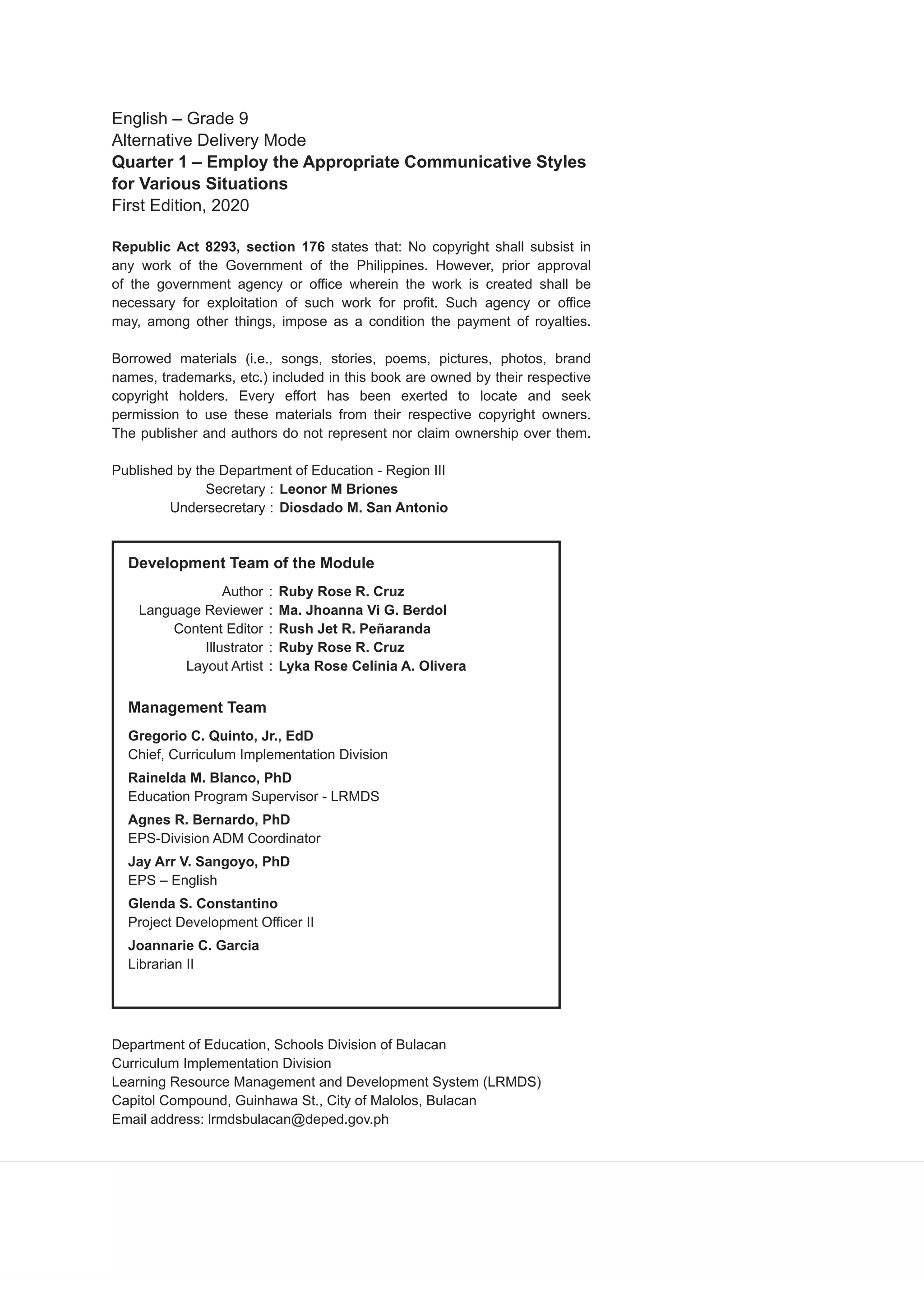 There are five communicative styles - frozen, formal, consultative, casual, and intimate. Frozen uses fixed speech for formal ceremonies. Formal is used in writing and speeches. Consultative allows feedback between speaker and listener. Casual employs informal participation between peers. Intimate is private dialog between close individuals. The style used depends on the context and purpose of the communication.