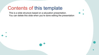 This document appears to be a slide presentation in Spanish about learning English. It includes slides with titles of planets in both English and Spanish as well as their key facts, such as Mercury being the closest planet to the sun. Other slides provide tips for presentations, such as using lists to organize ideas clearly. The final slide credits the template creator and provides contact information.