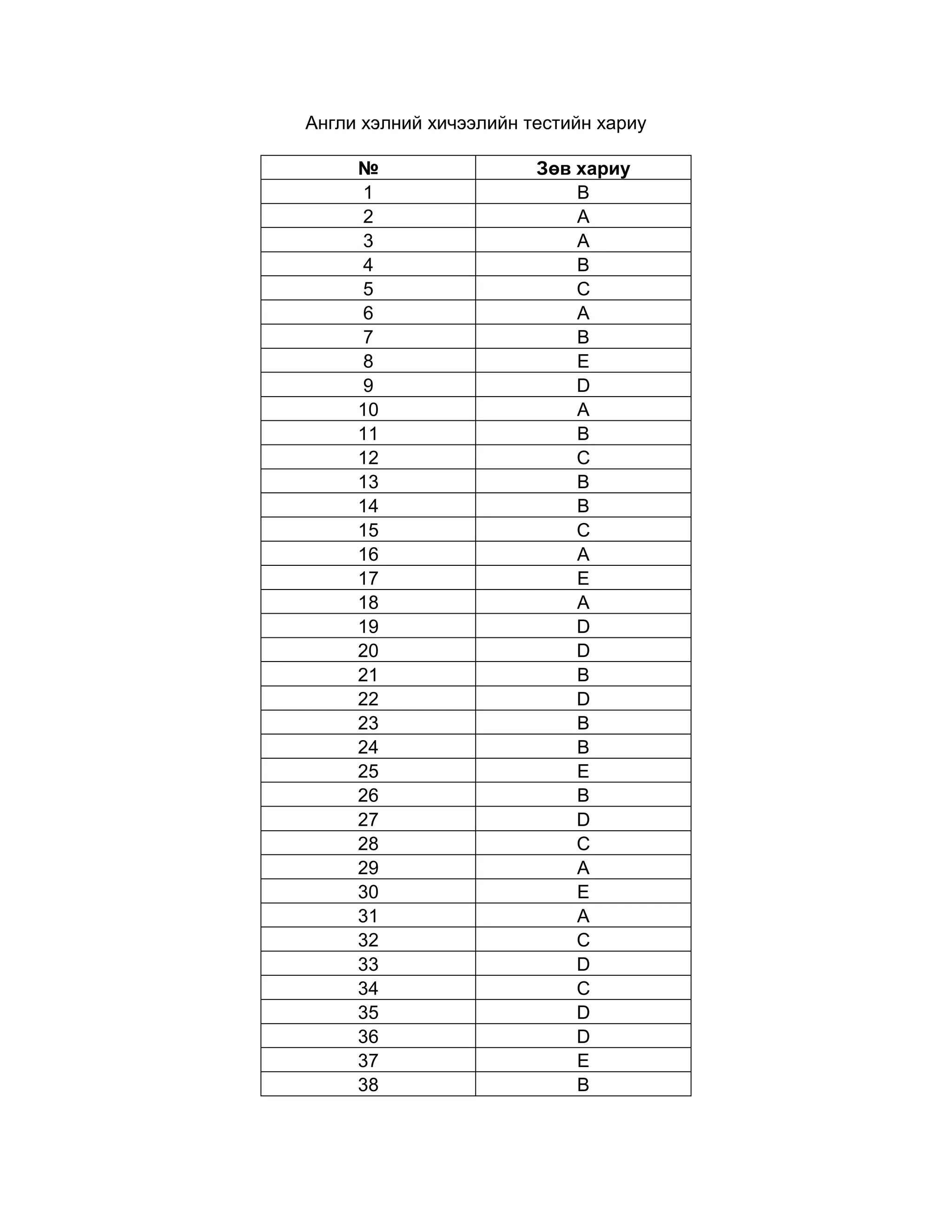 Englishkey 1. Англи хэлний хичээлийн тестийн хариу