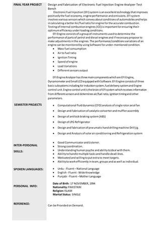 Juaid Khurshid Awan is a mechanical engineer from Pakistan seeking a growth-oriented career where he can contribute his knowledge and skills. He has experience in installation and replacement of hydraulic gates, erection of steel structures, and supervision of welding and painting activities. He completed a three-month internship involving dismantling gates, installation of embedded parts and hoisting systems, and conducting inspections using NDT techniques. He holds a BSc in Mechanical Engineering and is proficient in ProEngineer, AutoCAD, MS Office, and spoken English, Urdu and Punjabi.