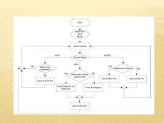 The Enhanced Adaptive Acknowledgment (EAACK) system comprises three main components: acknowledgment (ACK), secure acknowledgment (S-ACK), and misbehavior report authentication (MRA), designed to improve network reliability and reduce false reporting of node misbehavior. S-ACK detects misbehaving nodes by forming groups of three consecutive nodes, while MRA addresses weaknesses in existing detection systems and verifies reports of misbehavior. The proposed secure enhanced adaptive acknowledgment scheme (SEAACK) and the anonymous leak detector mechanism aim to handle energy-related issues and identify colluding malicious nodes effectively.
