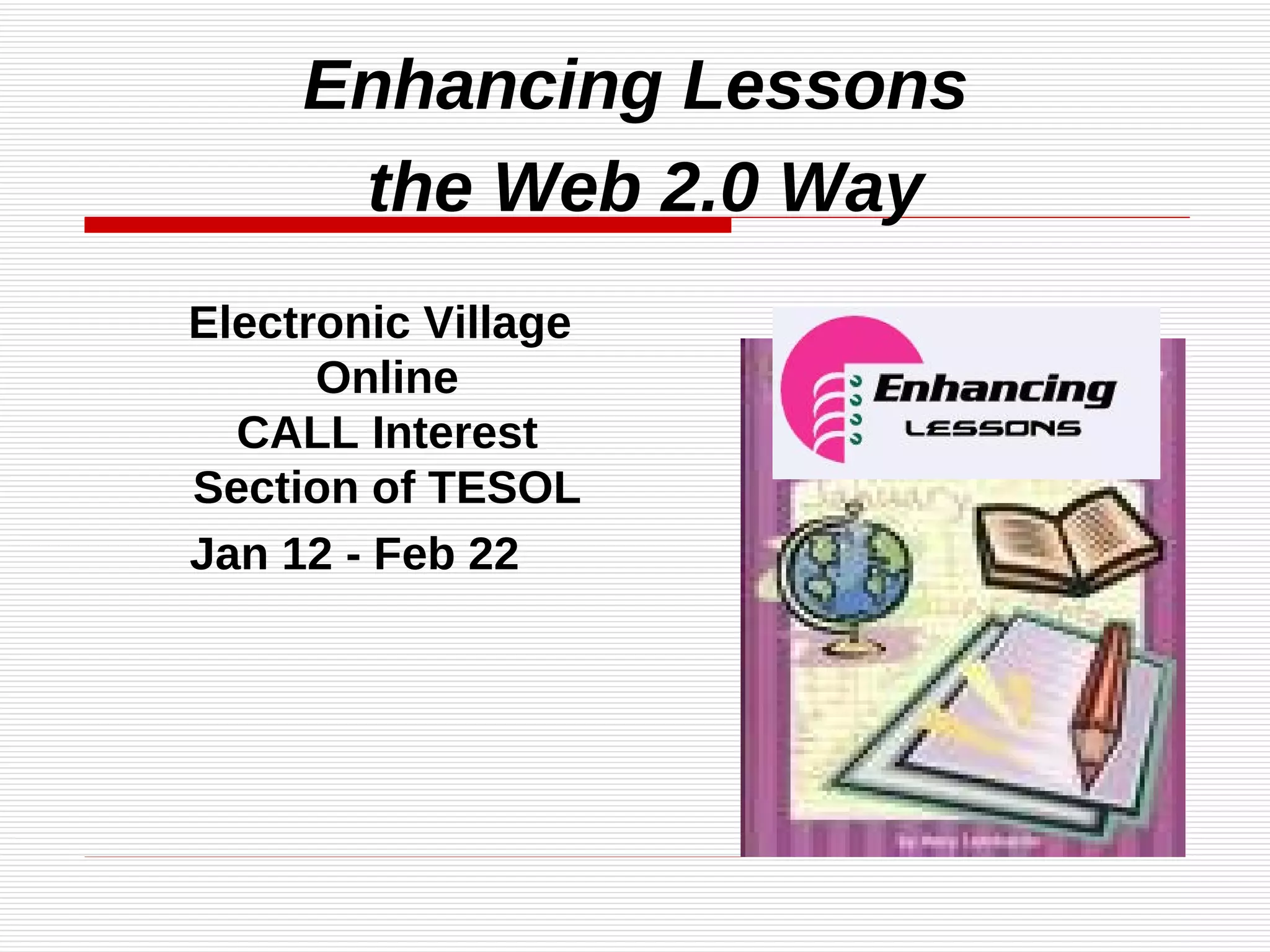 This document summarizes a 6-week online course on enhancing English language lessons using Web 2.0 tools. The course explored tools like blogs, Voicethread, Slideshare and more. Participants gave feedback on the tools and shared lesson plans integrating the tools. The final week had participants reflect on their learning and consider joining related online communities of practice.