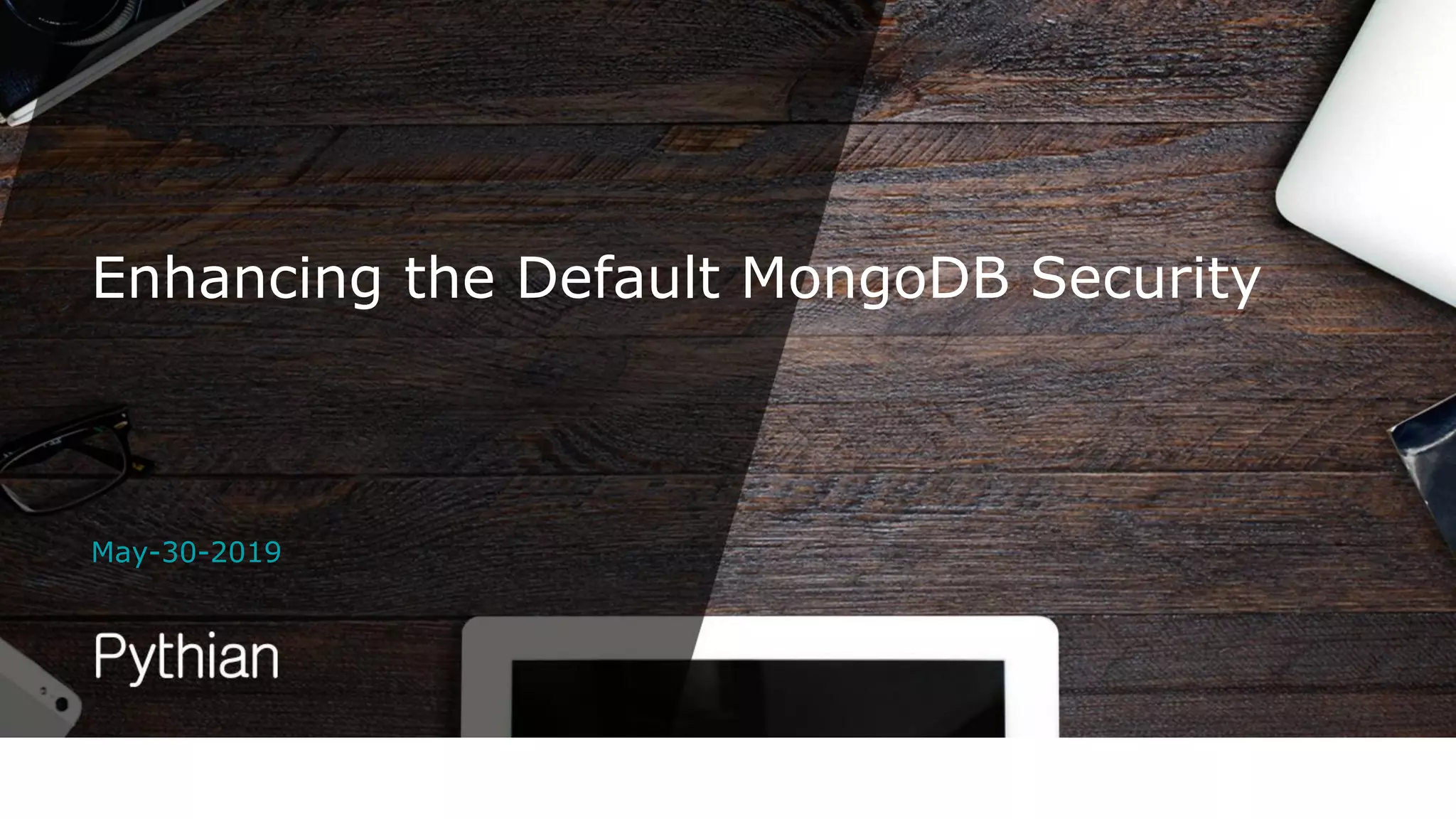 1. The document discusses enhancing default MongoDB security by implementing access control, authentication, network hardening, encryption, and auditing.