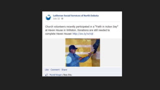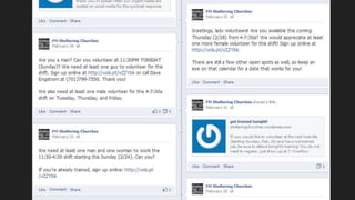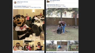 The document discusses using social media to enhance a volunteer program. It recommends setting SMART goals for social media use, such as sharing 3,000 posts on Facebook by the end of the year. Understanding the demographics of social networks and volunteers is important. The document provides guidelines for using social media to recruit, recognize, and retain volunteers. Recruiting volunteers on sites like Facebook, blogs, and volunteer matching sites is suggested. Recognizing volunteers on social media helps make the experience social. Retaining volunteers involves understanding their motives, providing transparency, convenience, appreciation, and follow up.