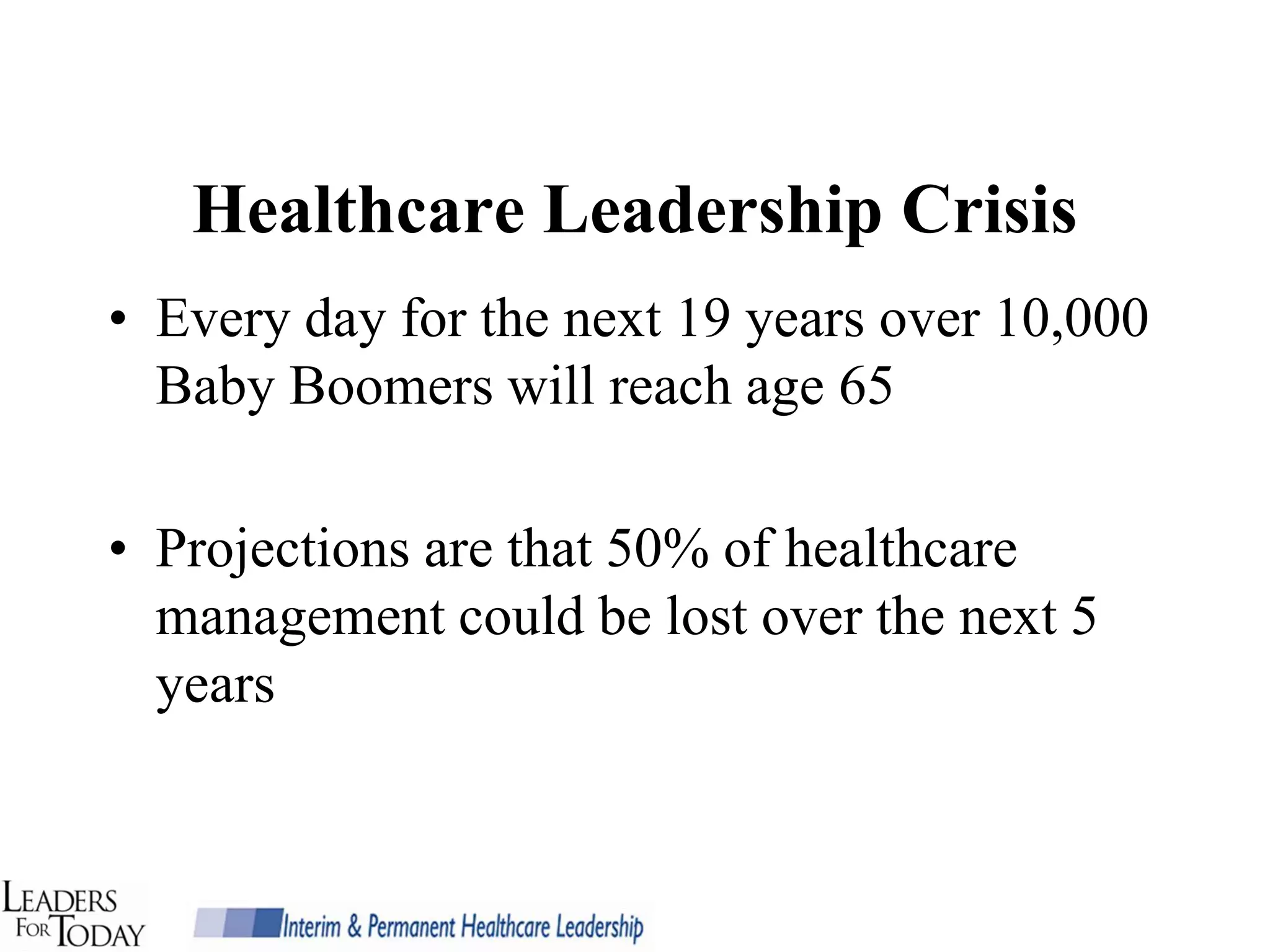 The document discusses the importance of succession planning for healthcare leadership. It notes that many healthcare organizations lack succession plans, despite projections that 50% of healthcare management could be lost in the next 5 years due to retirements. It then provides definitions and rationale for succession planning, including cost savings, continuity, and having a contingency plan. The document outlines best practices for developing a succession plan, including making a business case, identifying and developing high-potential leaders, and implementing leadership development programs. It discusses factors that can impede effective succession planning if not addressed.