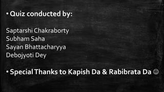 The document outlines a general quiz event called Enigma’17, describing the quiz format, team compositions, and various trivia questions covering diverse topics. Questions touch on subjects such as cultural phenomena, notable historical figures, and specific knowledge areas like dietary laws and currency features. It also includes prompts related to famous personalities and objects, showcasing a range of pop culture references and historical contexts.