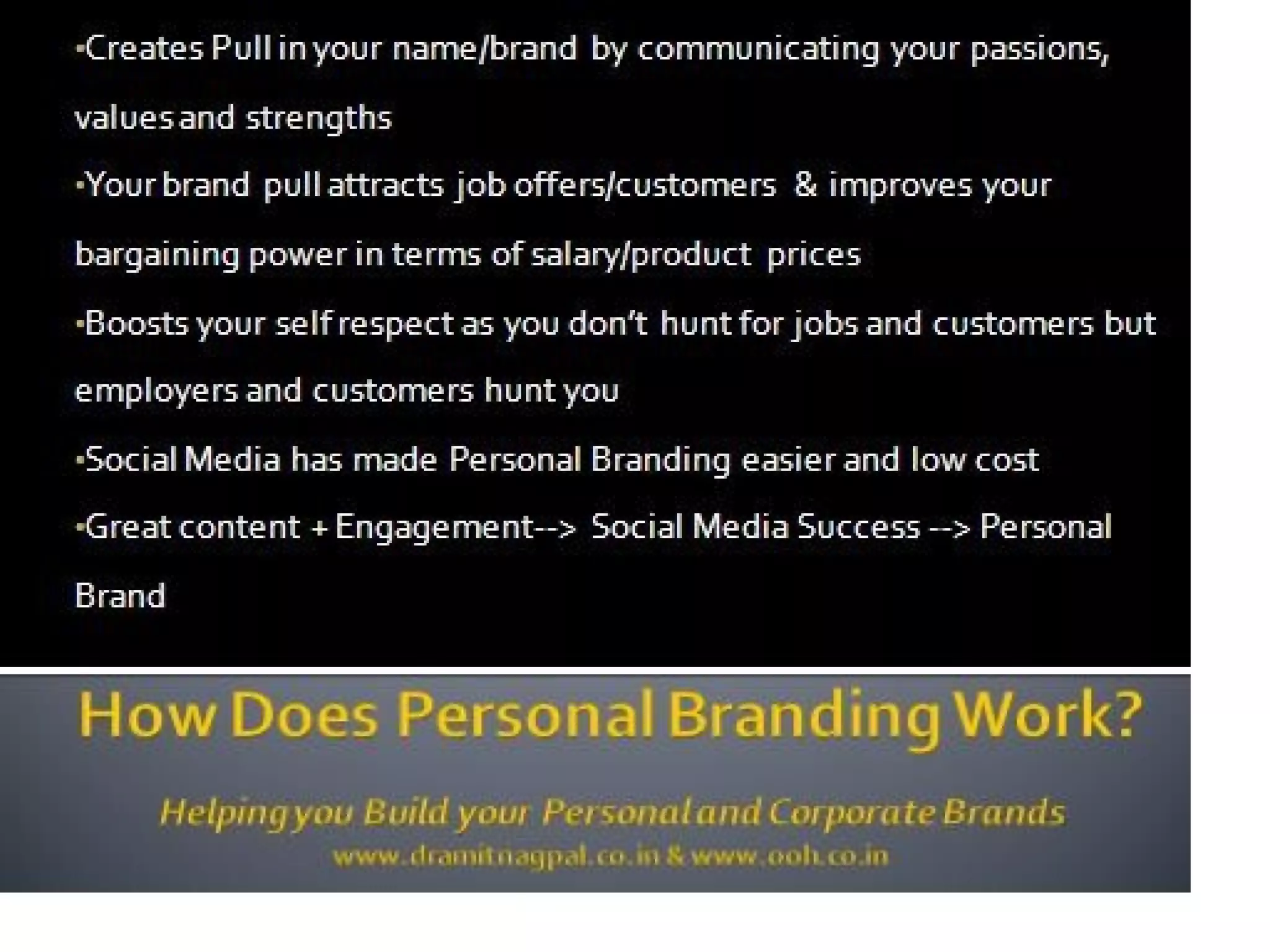 3. Evolve as a personal brand by learning branding principles, building credibility through knowledge sharing, and converting social media efforts into financial or career opportunities. Regular feedback helps personal brands to continuously improve.