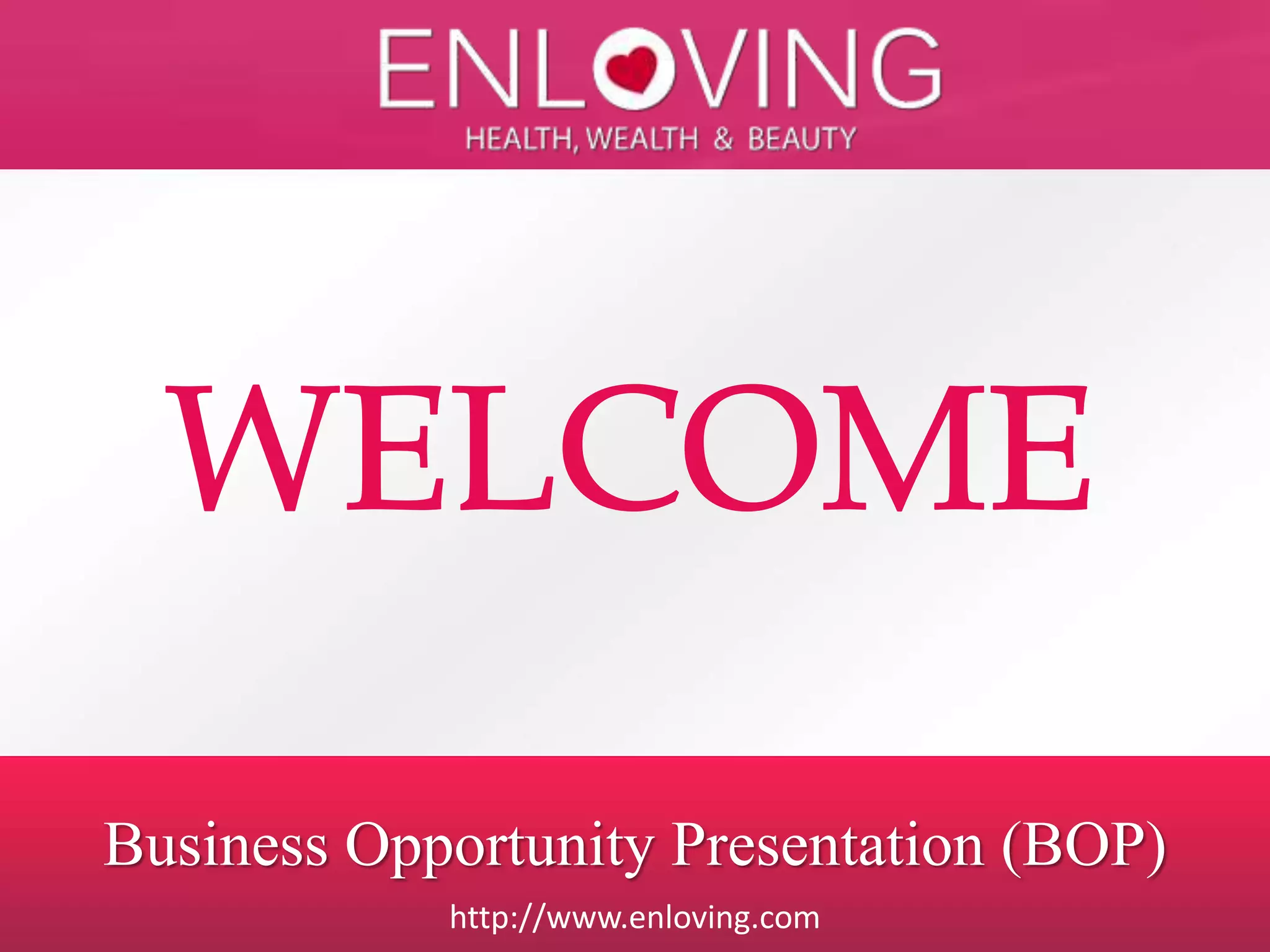 This document presents a business opportunity with Enloving International, a multi-level marketing company operating in health, beauty, and wellness products. It outlines the company structure, fast-growing industries it operates in, and several product lines including stem cell serums, immune boosters, and health bracelets. The business opportunity involves selecting an enrollment package and getting two business partners to enroll, with compensation through a dual team bonus plan including weekly payouts and incentives.